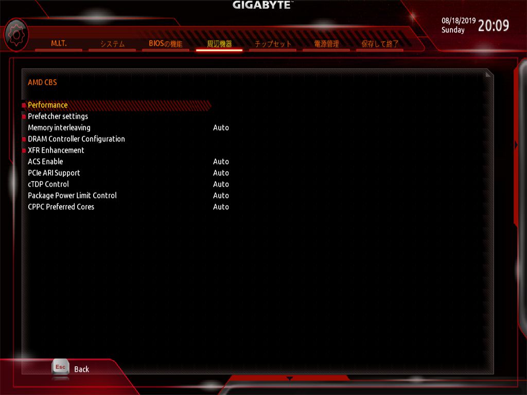 GIGABYTE製マザーボードのBIOS画面(GUI)は「AORUS」シリーズと「UD」シリーズで大きく異なる。AORUSのBIOSは見た目だけでなく使い勝手も向上しており、非常におすすめだ。一方UDは、一昔前のUEFIという感じがする。使い勝手もX570と比較すると見劣りしてしまう。