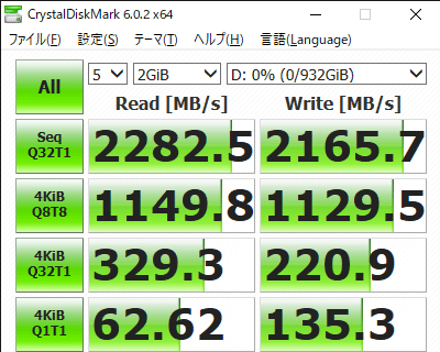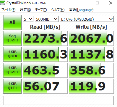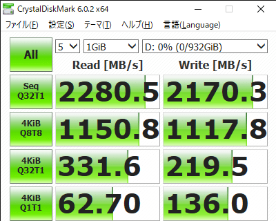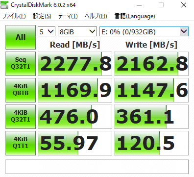 | シーケンシャルリード | 250GB-2000MB/S 500GB-2200MB/S 1TB -2200MB/S |